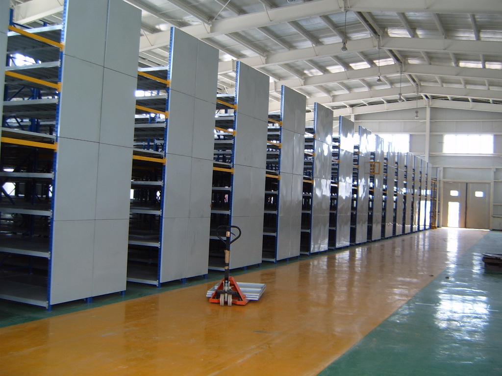阁楼式货架系统是在已有的工作场地或货架上建一个中间阁楼,以增加存储空间,可做二、三层阁楼,宜存取一些轻泡及中小件货物,适于多品种大批量或多品种小批量货物,人工存取货物,货物通常由叉车,、液压升降台或货梯送至二楼、三楼,再由轻型小车或液压托盘车送至某一位置。此类系统,通常利用中型搁板式或重型搁板式货架作为主体和楼面板的支撑(根据单元货架的总载重量来决定先用何种货轲),楼面板通常选用冷轧型钢楼板、花纹钢楼板或钢格栅楼板。近几年多使用冷轧型钢楼板,它具有承载能力强、整体性好、承载均匀性好、精度高、表面平整、易锁定等优势,有多种类型可选,并且易匹配照明系统,存取、管理均较为方便。单元货架每层载重量通常在500KG以内,楼层间距通常为2.2m—2.7m,顶层货架高度一般为2m左右,充分考虑人机操作的便利性。此类系统在汽车零部件领域,汽车4S店、轻工、电子等行业有较多应用。